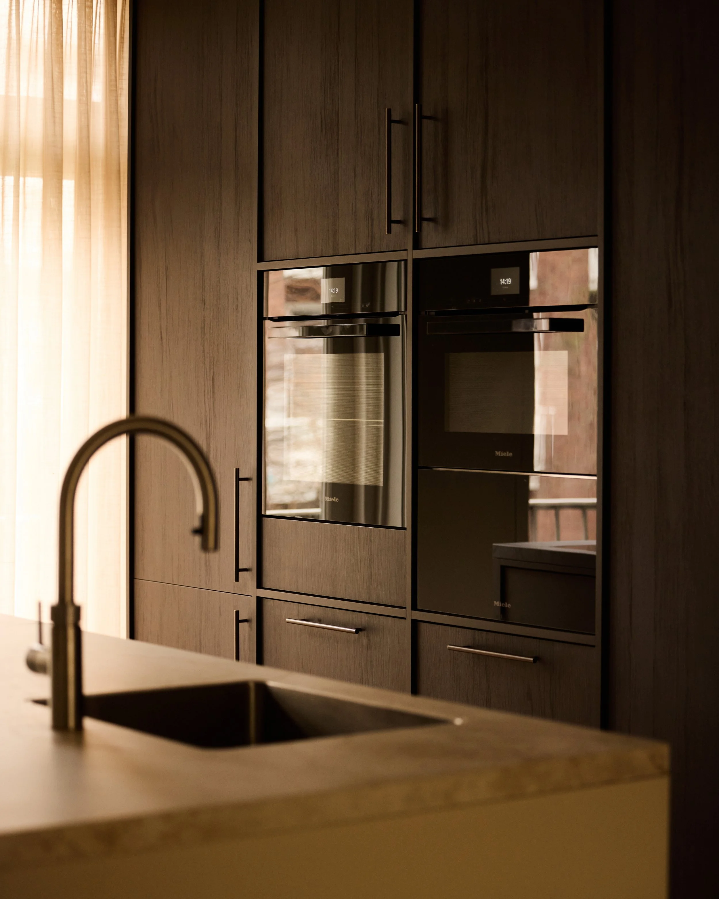 A refined city apartment shaped by soft contrasts and tactile materials. Sculptural details and warm tones create a layered calm — understated, yet full of presence.